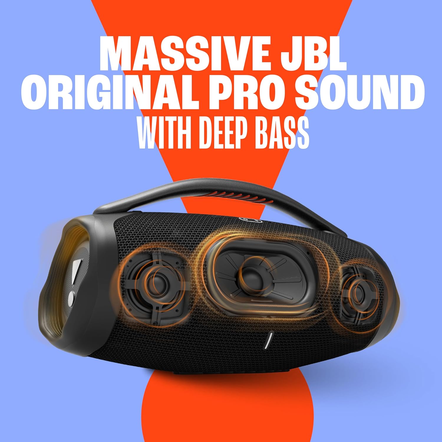- Strong, bold design: We've updated the sleek, iconic JBL silhouette. With twin side caps and a sturdy metal handle with an eye-catching orange silicone grip, you can take your music—and your style—anywhere. JBL is committed to more sustainable, earth-friendly packaging. That's why the Boombox 3 comes in a recyclable paper-based box, including the inner tray, with an exterior printed with soy ink.